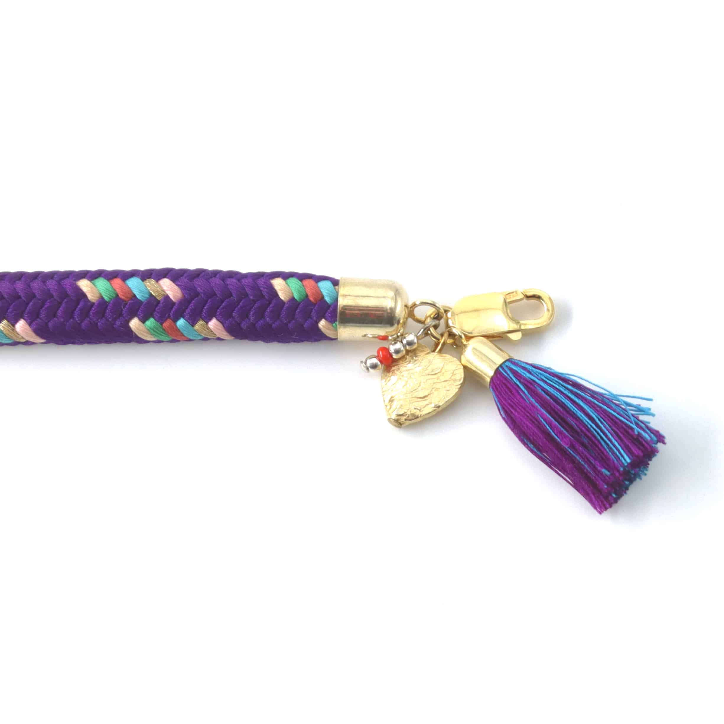 Band und Quaste Seide und Effektgarn. Verschluss, Fassung und Anhänger 925 Silber vergoldet