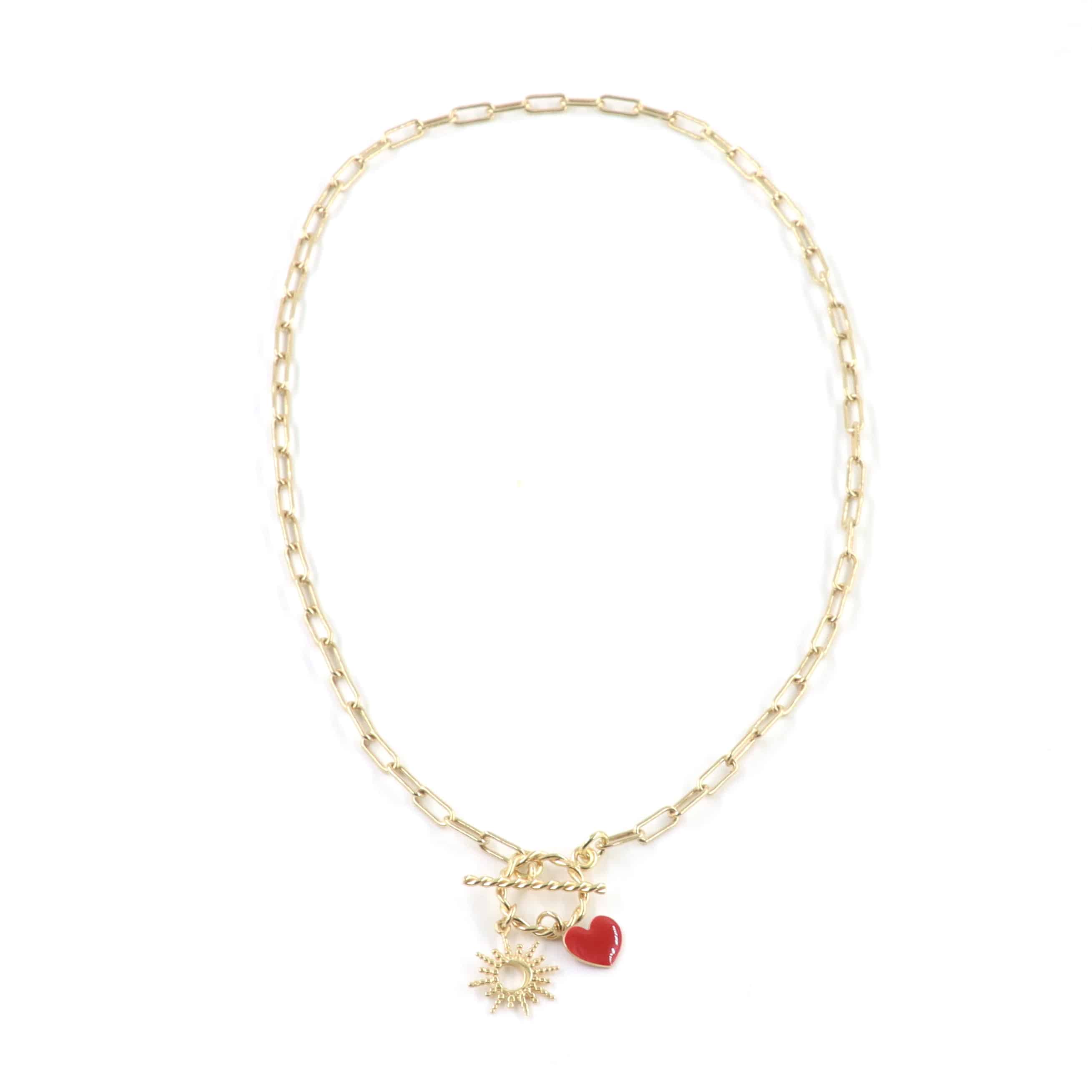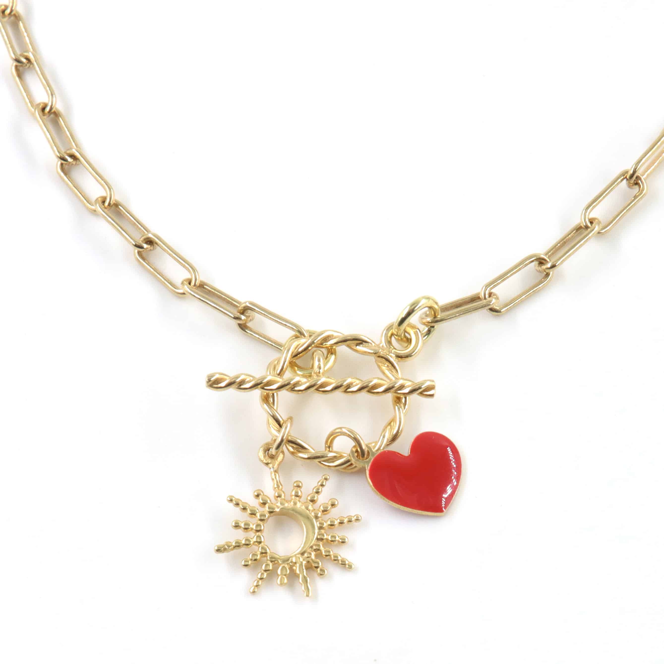 Kette, Knebelverschluss und Sonnen anhänger 925 silver vergoldet, Herz Emaille